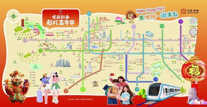 r乘坐14号线在园博园站下车,到京彩新春彩灯嘉年华一探究竟,庙会、花灯、演出、潮玩,应有尽有;16号线丽泽金融商务区下车,到丽泽天街“新春小屋”打卡,挑选红火新春礼物;14号线西局站下车,在雪场游乐园雪地撒欢……北青报记者在新发布的“丰台消费地图”中看到,吃、住、游、购、娱一站式“上新”,上线了1000多个精选优质消费地点,同时特别甄选了京彩新春彩灯嘉年华五公里范围内60余个餐饮点位。